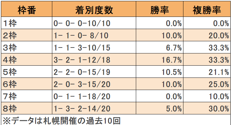 8月6日(日)に札幌競馬場で行われるエルムステークス(3歳上・GIII・ダ1700m)について、枠順データから検証し…