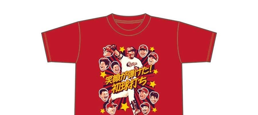 松山を中心に笑顔の選手たちをプリント 広島は4日の巨人戦(マツダ)でサヨナラ安打を放った松山竜平外野手のTシャツを、6日…