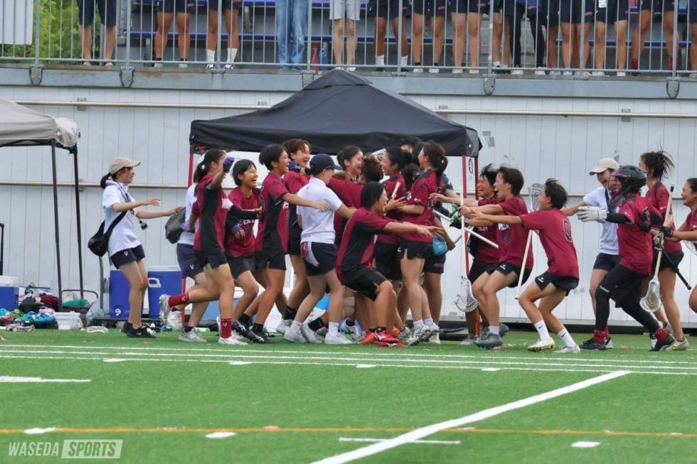 早大ラクロス部女子は、関東学生リーグ戦の第二戦で強豪・立大と対戦。初戦の日体大戦で敗れた早大にとって、FINAL4進出に向けては絶対に落とすわけにはいかない試合であった。1Qからテンポ良く点を重ねて4点をリードすると、2Qで差を縮められるもリードを保って試合を進める。迎えた4Q、勝利目前で4連続失点を喫し逆転されてしまう。それでも残り時間1分からフリーシュートを2本成功させ土壇場で大逆転。死闘を制してFINAL4進出に大きく前進した。