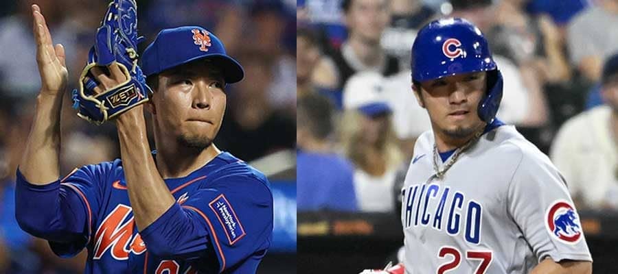 カブス戦に先発したメッツ・千賀滉大(左)とカブス・鈴木誠也【写真:ロイター】