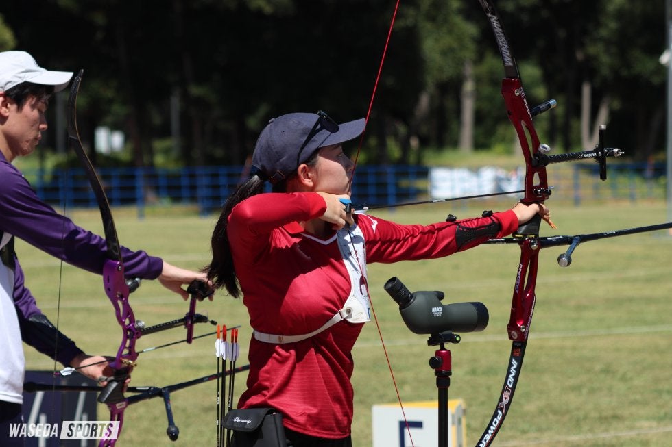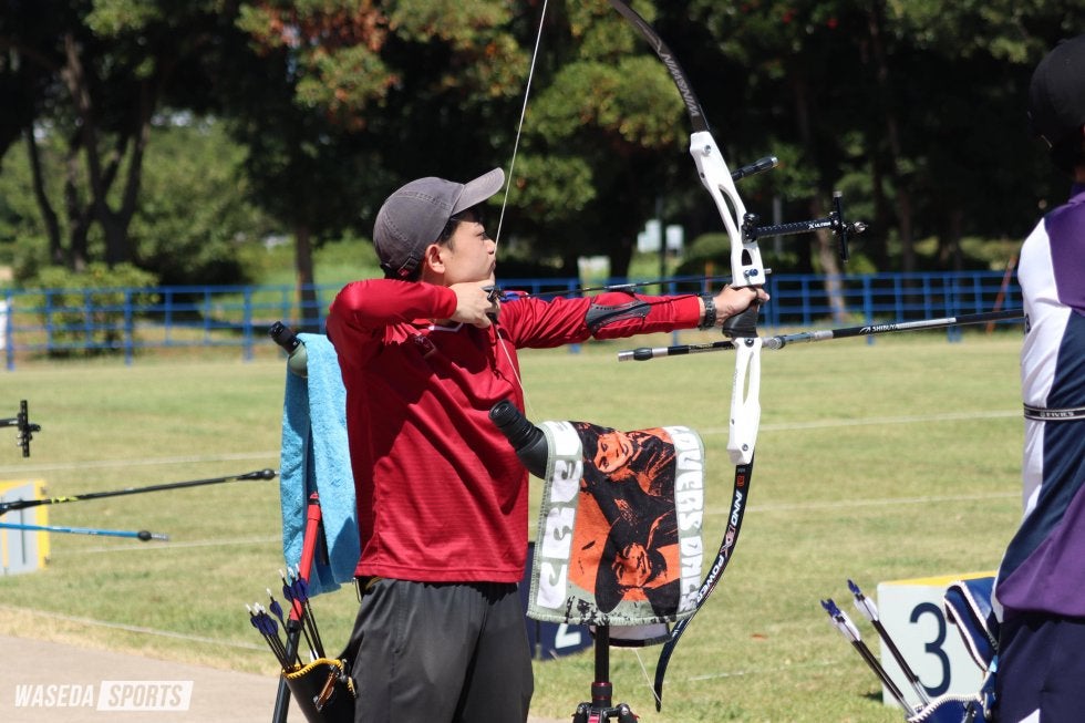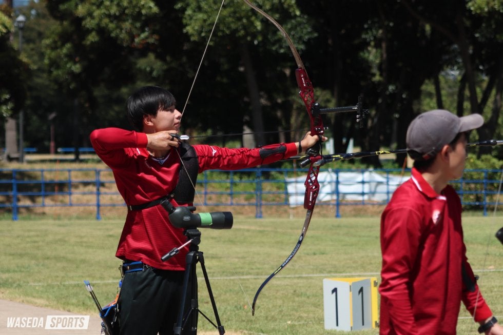 全日本学生王座決定戦(王座)後に発足した第62代アーチェリー部。その初陣となる関東学生個人選手権(個選)の予選が東京・夢の島公園アーチェリー場にて開催された。早大からは新男女主将である山下健友男子主将(スポ3=愛知・東海))、園田稚(スポ3=エリートアカデミー)をはじめ、計16名が出場した。男子は上位100名、女子は上位80名に本選への扉が開く。ミックスで金メダルを獲得したFISUワールドユニバーシティゲームズから中3日で臨んだ園田は圧巻の行射で672点を記録。10点の本数の差で惜しくも2位だったものの、頼れるエースが貫録を見せつけた。王座メンバーが順当に予選を通過する中、それに続く5番手につけたのは大学入学後初の公式戦となったルーキー・西村日杏(人=東京・西)。前半の50mを24位で折り返すと、30mでも300点を超える行射を見せ、38位に入った。男子では柿沼が昨年から100点以上得点を伸ばし、99位に。ラストチャンスとなった今回で初の個選本選に出場を決めるなど、早大からは10名が本選へ駒を進めた。