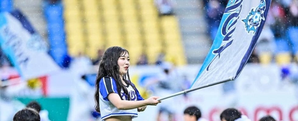 J1アビスパ福岡のオフィシャルチアリーダーズがコラボした 撮影:中地拓也