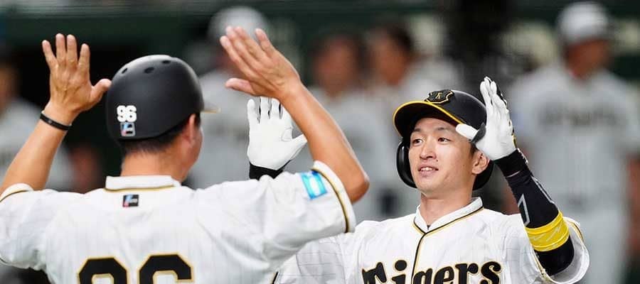 決勝6号2ランを放った阪神・近本光司(右)【写真:矢口亨】