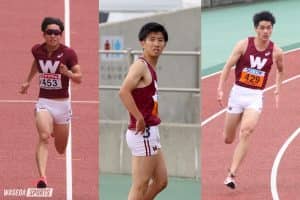 早大から出場の短距離陣。左から、稲毛、井上、西裕