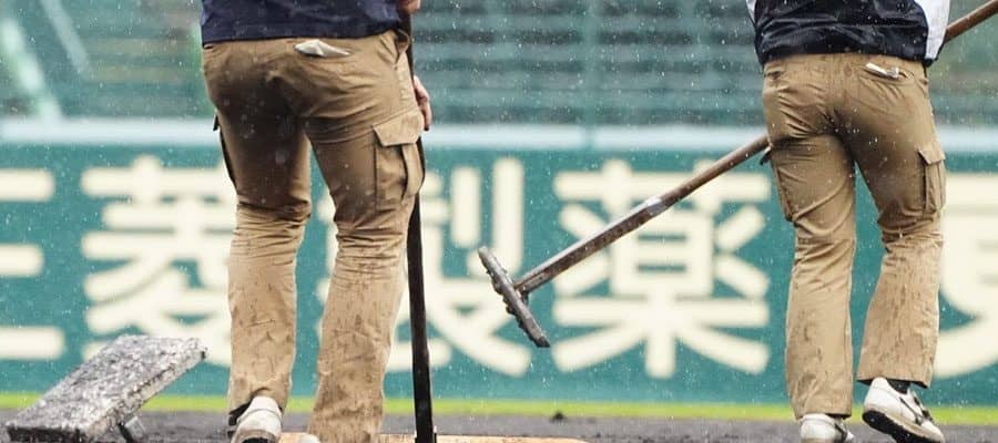 16時頃に雨が強くなり、8回1死一、二塁というクラークの好機に試合は中断。雨はその後20分ほど降り続いた。マウンドや本塁付近にはシートがかけられたものの、その周辺には大きな水たまりができた状態だった。