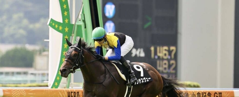 13日、小倉競馬場で行われた第10R・博多ステークス(3歳以上3勝クラス)で、坂井瑠星騎乗、ダンテスヴューが1着となり…