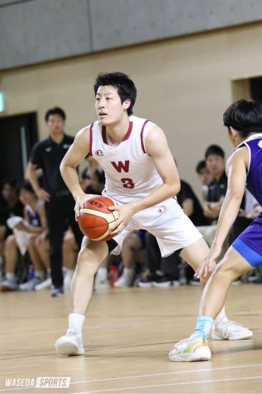 後半戦は相手の連続得点で幕を開ける。相手のスリーポイントが当たり始め、早大は思うように点差を離せない。第3Q終盤、城戸のバスケットカウント、下山の速攻で連続得点し、67-50で最終第4Qへ。F石坂悠月(スポ3=東京・国学院久我山)が体を張ったリバウンドで続けて得点する。相手もスリーポイントを中心に得点して食い下がるが、堀のバスケットカウントやG堀田尚秀(スポ2=京都・東山)のスリーポイントでじわじわと差をつける。最後はC初宮嘉一(スポ2=東京・頴明館)が得点し、93-71で白星をあげた。