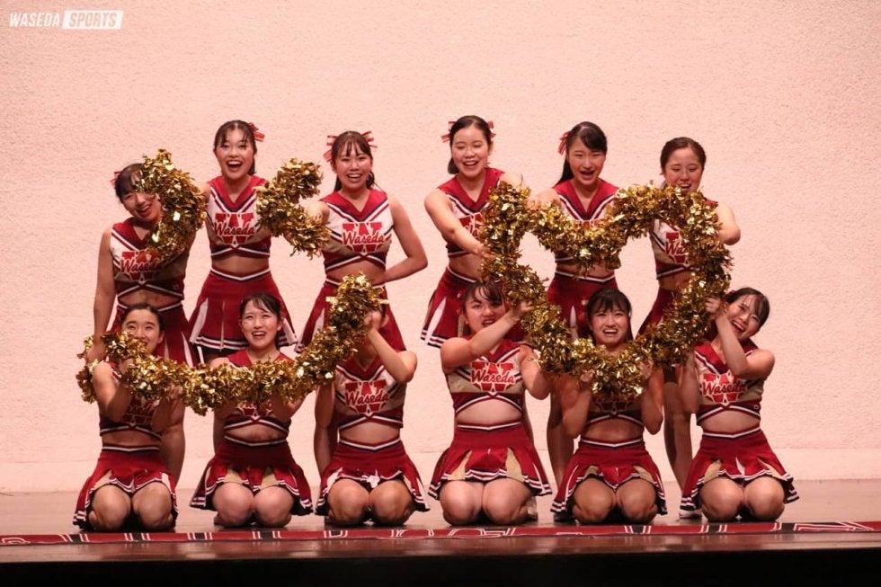 続いて、チアリーダーズが演技を披露。受験生の努力にエールを送る『ヒカレ』の楽曲に合わせ、次々とキレのあるスタンツやトスを披露し、観客席から感嘆の声が漏れる。ポンポンで作られた、笑顔を表現する顔文字や記号で受験生を元気づける。