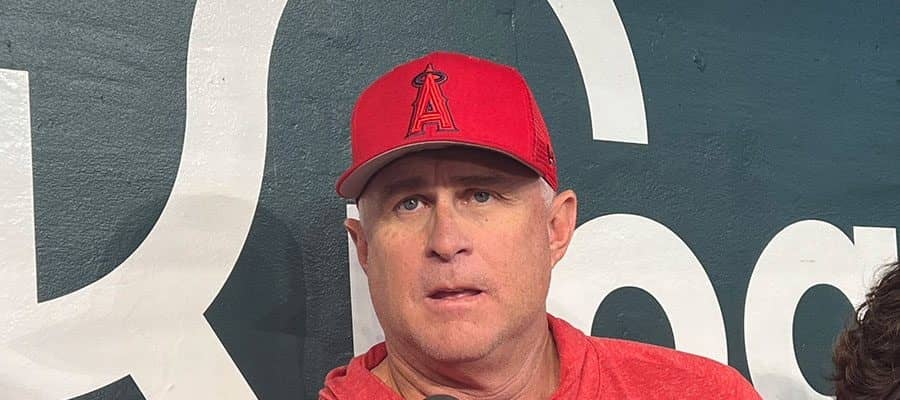 試合前に取材に応じたエンゼルスのフィル・ネビン監督【写真:川村虎大】