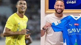C・ロナウド(左)やネイマール(右)といった大スターが相次いで参戦しているサウジアラビア・サッカー界。その現状を嘆く選手…