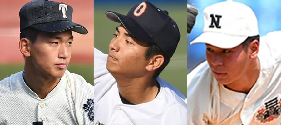 大阪桐蔭・前田悠伍、沖縄尚学・東恩納蒼、日大三・安田虎汰郎(左から)【写真:小林靖】