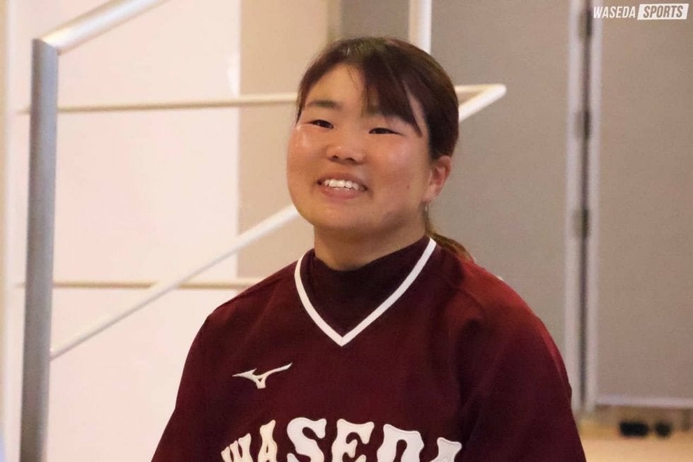 2004(平16)年1月9日生まれ。東京・新宿高出身。人間科学部2年。質問に絶えず笑顔で応じてくださった矢口選手。昨夏の練習後に行ったノックと昨年の東日本インカレが印象に残っているそうです!