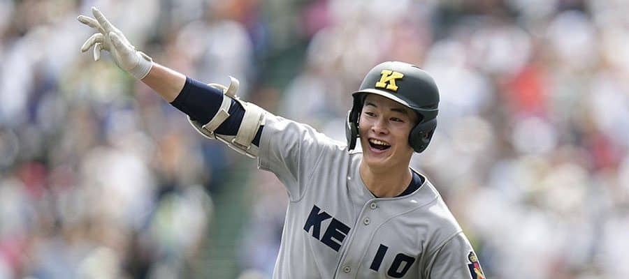 甲子園決勝で先頭打者弾を放った慶応・丸田湊斗【写真:共同通信社】