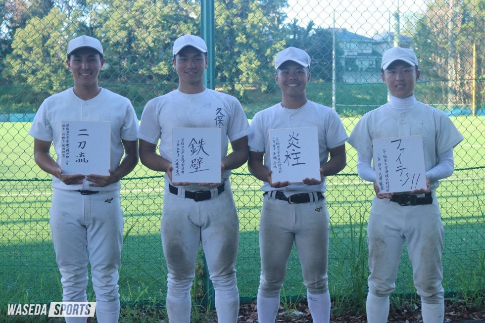第3回に登場するのは、レギュラーとしてチームをけん引する大澤龍登(文構3=埼玉・星野)、髙橋浩成(教3=東京・早実)、久保嶋真也(社3=神奈川・桐蔭学園)、岡田和也(スポ3=東京・国学院久我山)の4人。主力として活躍する3年生の4選手にこれまでの戦い、全日本大学選手権(全日)への意気込みを中心に語っていただいた。