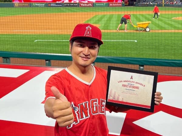 2022シーズンにエンゼルスの全試合を観戦し、表彰されたミニタニ(写真/本人提供)