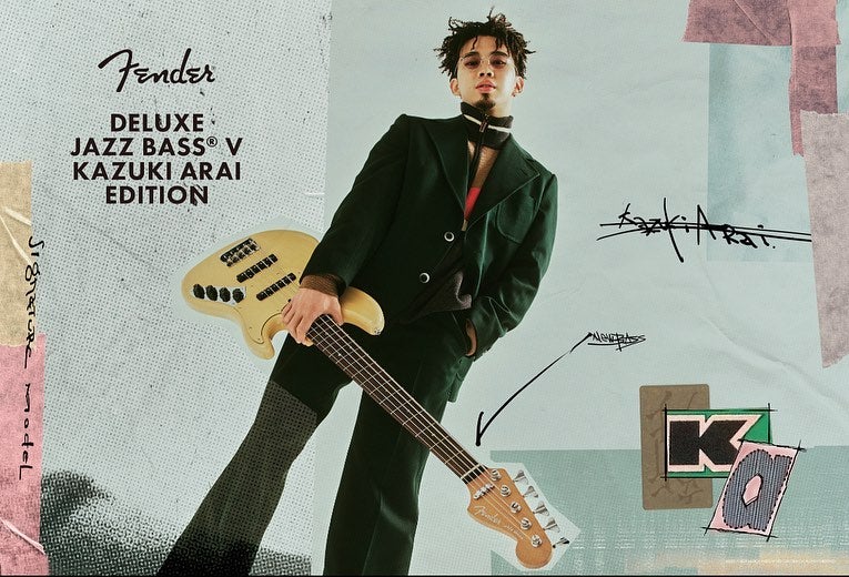 大人気バンド【King Gnu】のメンバーとして活躍している新井は「Fenderから第二弾として自分のベースを出せるなんてね、本当に有難いです」と綴り、新井モデルのベースが発売されることを公表した。