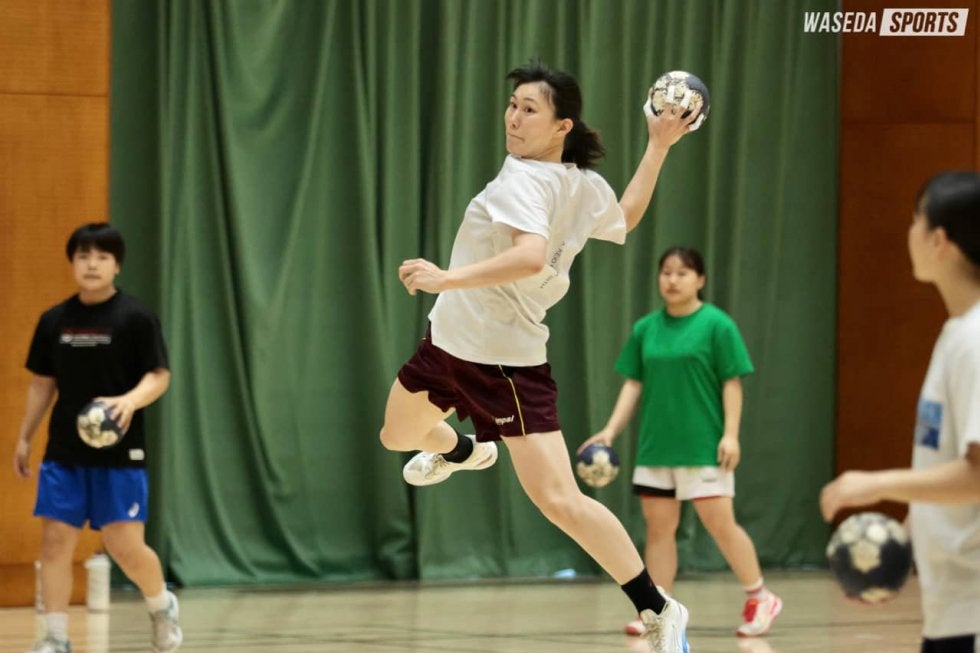 「秋リーグ優勝」。東伏見の体育館にはこの文字が掲げられている。関東学生春季リーグ(春季リーグ)から約三ヶ月間、早稲田女子ハンドボール部は関東学生秋季リーグ(秋季リーグ)での優勝を目標に日々練習に励んできた。春季リーグでは、日体大や東女体大など、数々の強豪校に勝利し、創部史上初となる上位リーグ進出を果たした。そんな波に乗る早大だが、村上楓主将(スポ4=福岡・明光学園) は「春季リーグは勢いで勝ち上がってきた部分があった。春の勢いに加えて質の高さが加わったチームで秋リーグは臨んでいきたい」と語る。春よりもさらに成長するために、夏は個人の技術を強化してきた。そして、秋季リーグに向け村上主将が目指してきたのは、一人一人が考え、互いにコミュニケーションを取り合うチームだ。なぜそのプレーを選択したのか、なぜそのミスが起こったのか、村上主将が質問を投げかけ、考えてプレーできるように意識しているという。また、練習前後に学年やポジションが異なるペアでフィードバックの時間を取ることにより、部員間のコミュニケーションを図っている。練習中にも、一つ一つのプレーに対して逐一話し合う姿が見られ、チームの状態は万全だ。プレー面では、3対3の攻防などのメニューに力を入れ、速攻を強化している。「背も高くないし、攻撃力もあるわけではない」(村上)早大は、丁寧にパスをつなぎ、息の合ったプレーで勝利をつかみにいく。秋季リーグで村上主将がキーマンとして挙げたのは山野紗由(スポ2=北海道・釧路江南) だ。春季リーグの東女体大戦では強烈なロングシュートでチームの得点源となるなど、リーグを通してチームの勝利に貢献してきた。浦野詩織副将(スポ4=愛知・旭丘) と共にレフトバックでプレーする山野は、秋季リーグでもその決定力を爆発させ、チームを勝利に導くだろう。ケガから復帰した木村百花(スポ3=東京・白梅学園) や鶴田文乃(スポ3=山梨・日川) の活躍にも期待がかかる。司令塔・村上主将、チームのエース・浦野 、攻守共に安定したプレーを見せるサイドシューター・青木里奈(スポ4=東京・白梅学園) 、守護神・川村夏希副将(スポ4=東京・佼成学園女) 、トレーナーとしてチームを献身的に支えてきた阿部史歩(スポ4=岩手・不来方) ら4年生にとっては、最後のリーグ戦となる。4年生はチームのために、下級生は4年生のために。今一番勢いに乗る早稲田女子ハンドボール部が、これまで以上に一つとなって、秋季リーグに臨む。