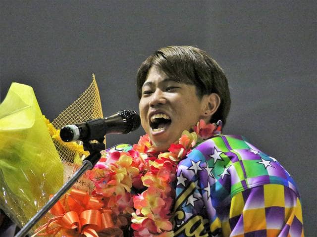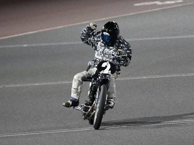 明後日にスーパームーンを迎える、月あかりに照らされて優勝戦がスタート。2号車の長田稚也が先制を決めて、序盤から逃げ態勢に持ち込むと、追い上げる有吉辰也を振り切って優勝のチェッカー。地元のホープが見事にG1初優出で初優勝、さらに34期生で初のグレードレース制覇を達成した。