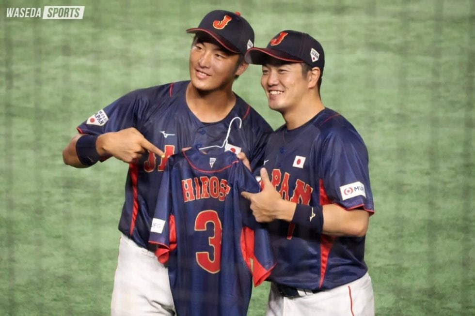 7月に日米野球優勝を果たした侍ジャパン大学日本代表(大学日本代表)と、8月31日より台湾で開催されるU-18ベースボールワールドカップに出場する侍ジャパン高校日本代表(高校日本代表)による壮行試合が東京ドームにて開催された。早大からは熊田任洋副将(スポ4=愛知・東邦)が選出。先週まで全国高等学校選手権大会を沸かせた多くの球児を擁する高校日本代表と対戦した。