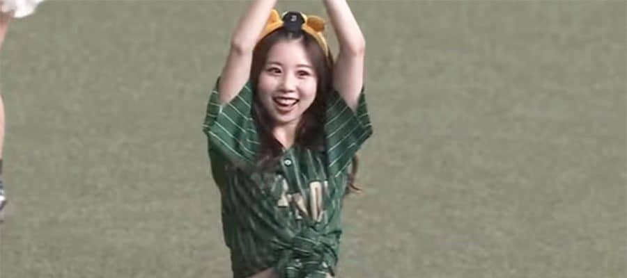 26日に京セラドームで行われたロッテ戦。黄色の耳としっぽをつけた「BsGirls」がグラウンドに登場すると、「ポンタのうた。」に合わせて踊り出した。この日は「Bs夏の陣」の特別ユニホームで試合が行われ、チアも緑色のユニに身を包み、腰を動かしながら尻尾をフリフリと揺らし、観客を魅了した。