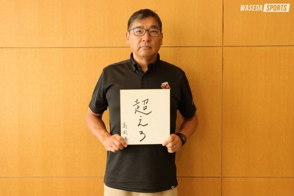 静岡・聖光学院高出身。1992(平4)年人間科学部卒。昨年の雪辱を晴らすため、日々練習を積み重ねる選手たちをサポートする髙岡監督。選手・スタッフ同様、監督自身も昨年を『凌駕』していきます!