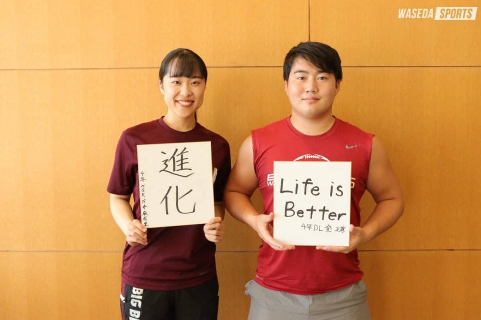第5回はMGR片井麻有里主務(政経4=東京・早実)とDL登正尊副務(政経4=神奈川・桐光学園)が登場。マネジャー主任、選手と兼務して幹部を務めているお二人に普段の業務やチームのことについて話を伺った。