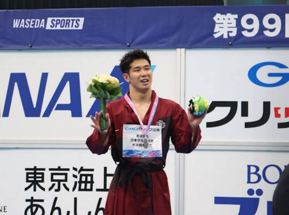 インカレ初出場となる1年生の活躍も光った。前日に自己ベストを更新して、小原天寧(スポ3=東京・目黒日大)とともに決勝に進出した、女子800メートル自由形の松﨑りん(人1=東京・日大二)。格上の選手がそろう中で、序盤は6位からスタートしていく。レース中盤で5位に浮上してから、じわじわと4位を泳ぐ選手との差を詰めていき、残り50メートルのターンで4位に。疲労も溜まる中、ラストスパートをかけ伸びやかな泳ぎで5位の選手の猛追を振り切り、初めてのインカレ決勝の舞台で自己新記録を出した。男子200メートルバタフライでは入江崇也(スポ1=大分・佐伯鶴城)と新開誠也(スポ1=鹿児島情報)の1年生コンビが、インカレデビュー戦で決勝に進んだ。それぞれ予選6組と5組に出場し、ともに50メートルのターンで組6位。そこからターンごとに一つずつ順位を上げていき、どちらも組3位でレースを終えた。レース直後、入江に泳法違反が取られたという誤った情報が会場にアナウンスされるというアクシデントがあり、一時早大チームは騒然となったがすぐに訂正され事なきを得た。迎えた決勝では日大の本多灯が大会新記録をたたき出すなど、ハイレベルなレースとなる。入江、新開は共に前半では横一線の3位争いに食い込んでいたが、次第に遅れてしまいそれぞれ入江が7位、新開が8位で決勝レースを終えた。