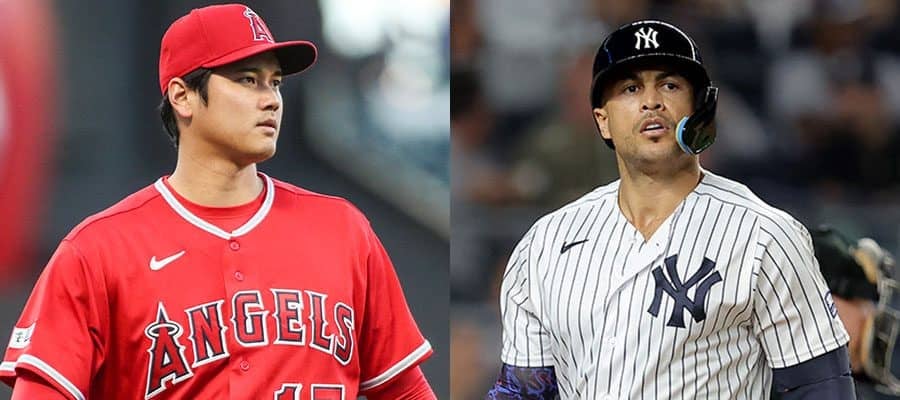 エンゼルス・大谷翔平(左)とヤンキースのジャンカルロ・スタントン【写真:ロイター】