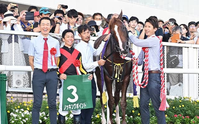 3日、新潟競馬場で行われた新潟記念(3歳上・GIII・芝2000m)は、道中内ラチ沿いを運んだ北村宏司騎手騎乗の2番人気ノッキングポイント(牡3、美浦・木村哲也厩舎)が直線でしぶとく脚を伸ばし、外から鋭く迫った7番人気ユーキャンスマイル(牡8、栗東・友道康夫厩舎)の追撃を1馬身振り切り勝利した。勝ちタイムは1分59秒0(良)。