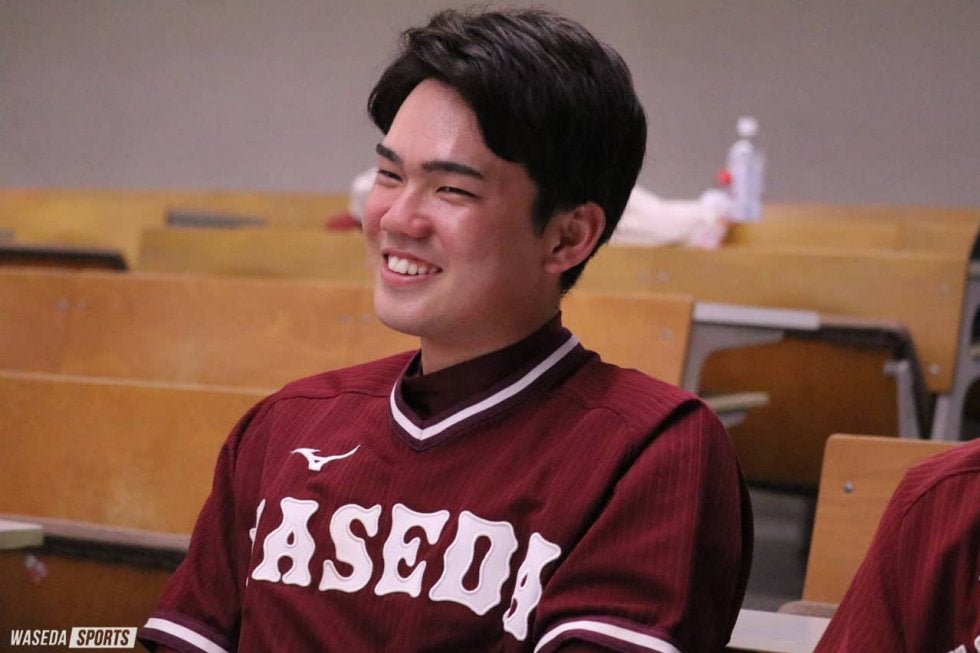 2001(平13)年4月11日生まれ。167センチ65キロ。東京・早稲田高出身。国際教養学部4年。内野手。斎藤選手と田中選手の好きなところは後輩というより友達みたいな感覚で接してくれるところとのことです!