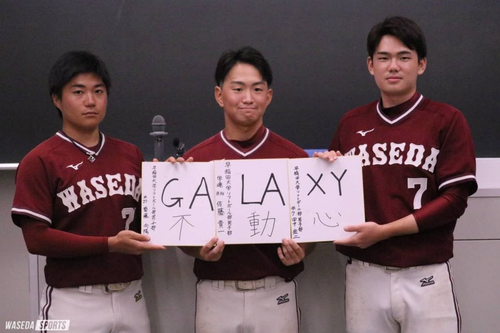 佐藤(貴) 守備の面でいうと、レギュラーは正直彼ら2人(斎藤、田中)なので、練習中の質を高めるという意味で、自分としてもバント処理のスピードを早めたり、守備範囲を広げて、よりチームメンバーの練習がはかどるように自分の技術を上げていきたいなというところです。打撃面では彼ら(斎藤、田中)ほど、与えられる打席数が多くないので、限られた打席で、一球必打で決められるよう、気持ちで負けないように頑張っていきたいです。
