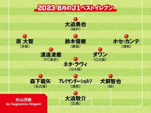 識者による独自選考のJリーグ月間ベストイレブン。8月は、スポーツライターの杉山茂樹氏が11人をセレクトした。酷暑のなか各チームを牽引する活躍をし、この先の終盤戦の注目になる選手は誰か。