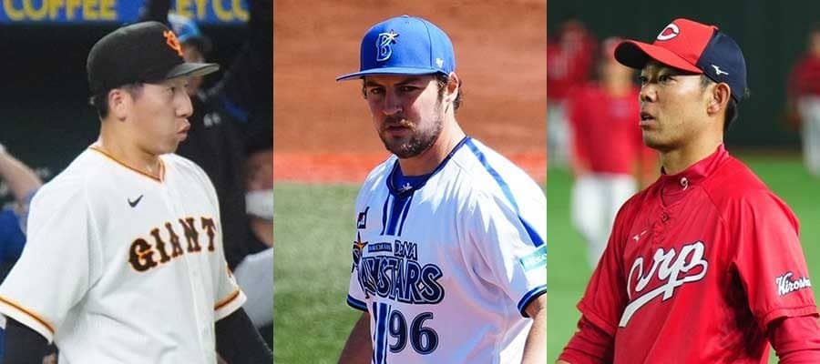 巨人の大勢、DeNAのトレバー・バウアー、広島の秋山翔吾(左から)【写真:荒川祐史】
