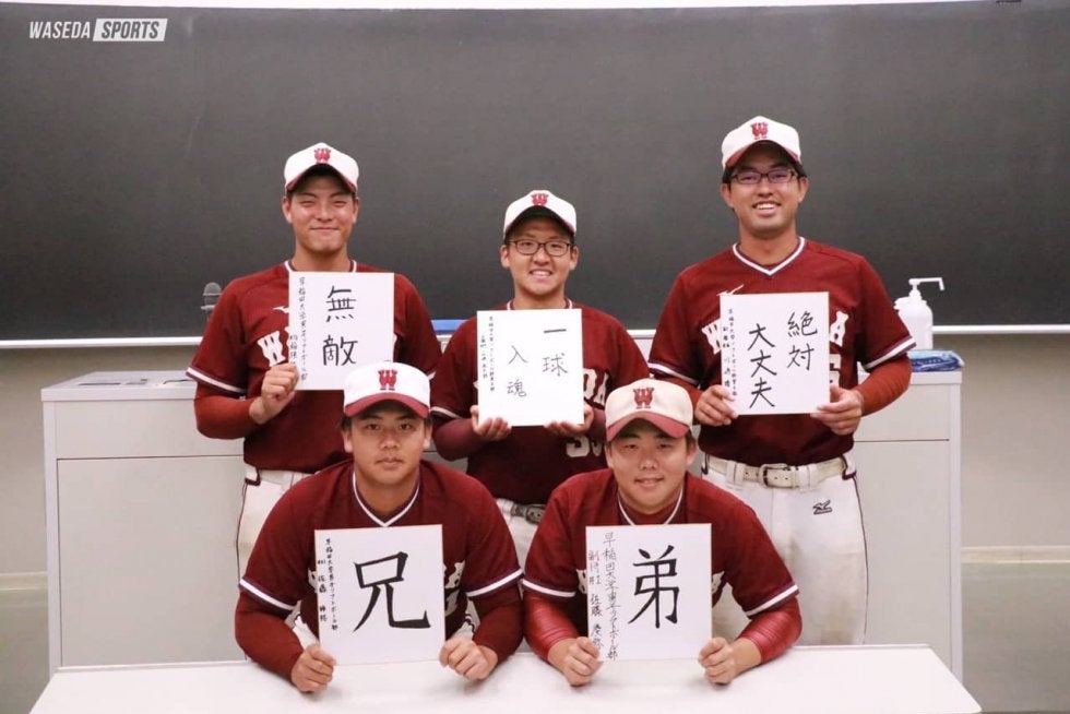第8回はバッテリーの5人。佐藤慶弥副将(スポ4=静岡・飛龍)、川崎晴(スポ4=東京・早稲田)、山崎佑太郎(商4=埼玉・…