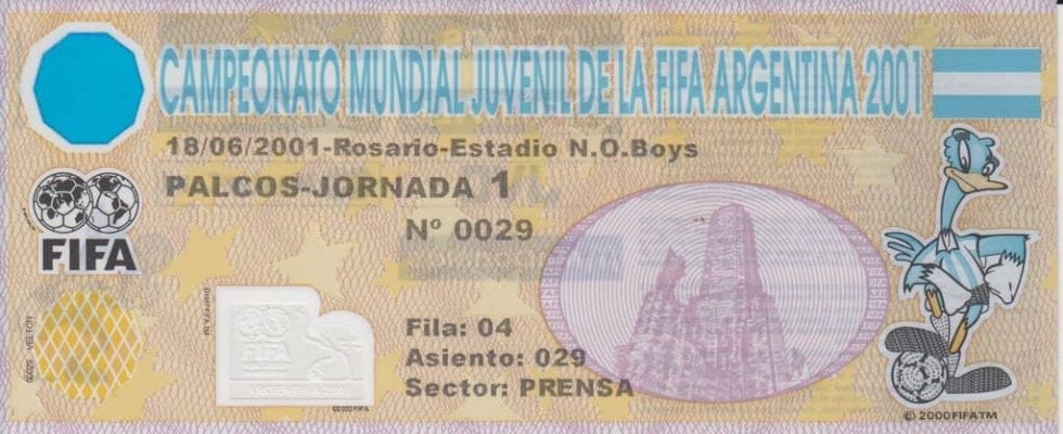 ワールドユース・アルゼンチン大会。ロサリオ会場の入場券 提供/後藤健生