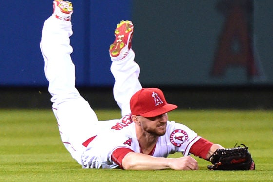 エンゼルスのシェーン・ロビンソン外野手が19日(日本時間20日)の本拠地ナショナルズ戦で豪快なダイブからスーパーキャッチ…
