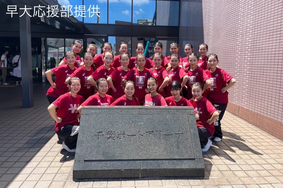 林莉乃チームキャプテン(政経4=東京・頌栄女学院)、小泉舞トレーニングチーフ(政経4=神奈川・清泉女学院)
