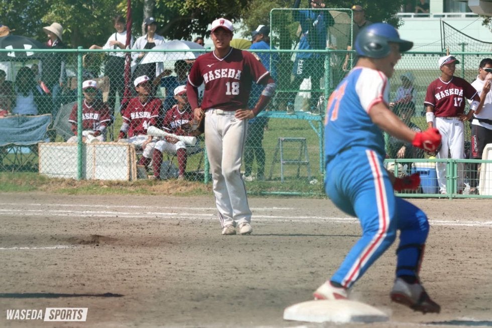 初回、2死から、斎藤向陽(社3=群馬・新島学園)が二塁打を放ち、好機を作るも無得点に終わる。早大の先発マウンドに上がったのは、3年生エースの稲垣拓朗(スポ3=群馬・新島学園)。初回、日体大の4番古敷谷宗(4年)に適時打を浴びるなど2点を先制される。2回。佐藤慶弥副将(スポ4=静岡・飛龍)の中前安打などで好機を作り、主導権を渡さまいと粘るも後続が倒れ、無得点となる。