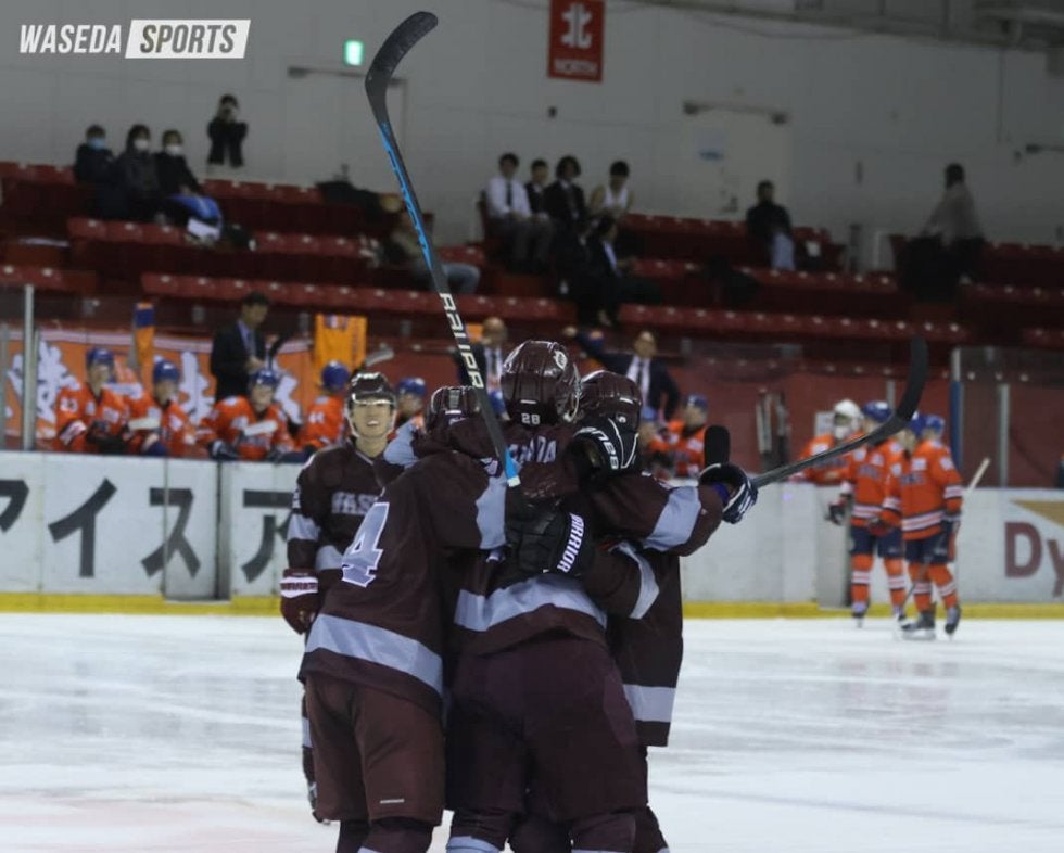 関東大学リーグ戦(秋リーグ)初戦を勝利し、2戦目の今試合。ここで連勝して勢いづきたい早大の対戦相手は法大だ。去年の秋リーグで無念の逆転負けをした相手にセカンドリーグ進出に向け確実に勝利したい一戦。第1ピリオド(P)、相手の猛勢に苦しむ早大。持ち前のスピードで得点のチャンスを掴み取るが、相手に先制点を許してしまい、早大が追いかける展開となる。第2P開始直後から果敢に攻め、1−1と同点にまで持ち込む。中盤、攻守の交代が激しい接戦となり、3−3で第3Pへ。その後惜しくも2失点をしてしまい、3−5で敗北した。