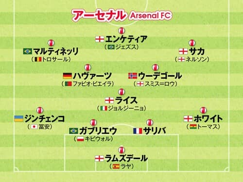 昨季終盤に逆転されて逃したリーグ制覇に再挑戦するシーズンだ。その意気込みを示すように、移籍市場で積極的に動いた。クラブ史上最高額となる1億500万ポンド(約190億円)を投じてデクラン・ライス(ウェストハム→)を迎え、さらにカイ・ハヴァーツ(チェルシー→)も高額で獲得し、グラニト・ジャカ(→レバークーゼン)が去った中盤を強化。