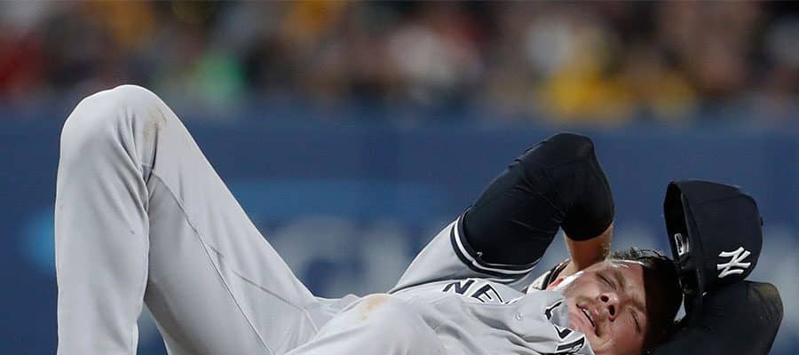 打球が直撃し倒れこむヤンキースのアンソニー・ミシェビッチ【写真:ロイター】