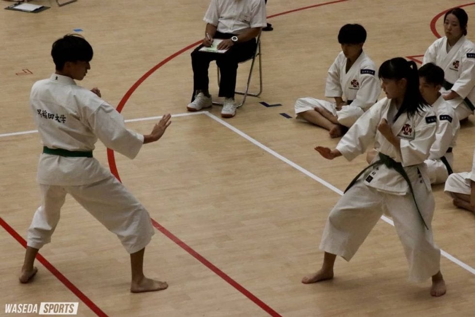 単独演武では単独有段の部に原綜侑(商2=東京・早実)、高橋佑(スポ2=東京・城北)、久保田羽菜が出場。原、高橋は惜しくも予選敗退となったが、久保田はキレのある演武を披露し、2位入賞を果たした。単独白緑帯の部に出場した渡邉翔平(文構1=早稲田佐賀)も、入賞こそ叶わなかったものの、初陣でありながら本選出場を果たし、健闘を見せた。下級生たちの活躍に「後輩がこんなに頑張っていたら負けられないなという良い危機感を持つことができた」(宇田樹主将、教4=東京・早実)とチームとしても全日本に向けて気を引き締められる大会となった。