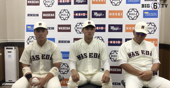 【ヒーローインタビュー】早稲田大学 小宮山悟監督・加藤孝太郎(④下妻一)・吉納翼(③東邦)