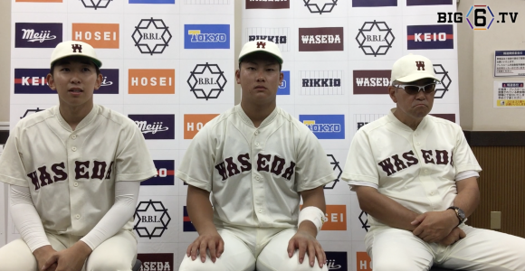 【ヒーローインタビュー】早稲田大学 小宮山悟監督・島川叶夢(④済々黌)・伊藤樹(②仙台育英) | 東京六大学野球