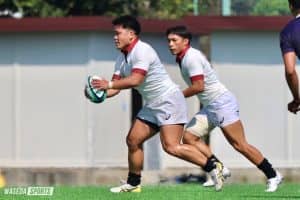 強い日差しが照りつける明大八幡山グラウンドにて、早大Bの関東大学ジュニア選手権(ジュニア選手権)初戦が行われた。観客席は大勢のファンで埋め尽くされ、注目の高まる中試合はスタート。前半、明大Bに先制点を許し、流れを奪われるものの、負けじと相手のミスを誘い、徐々に点差を縮める。14ー17で迎えた後半、相手ボールをFB久富連太郎(政経4=島根・石見智翠館) がインターセプトし、岡本大輝(スポ4=東京・本郷)が逆転トライに成功。その後も立て続けにトライを挙げた早大Bが、このまま逃げ切ると思われたが、試合間際に隙を突かれトライを献上。36ー36で開幕戦勝利とはならなかった。