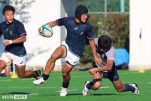 前半は早稲田らしさがなくて、タックルもタンパクで攻撃もうまくつながらなかったのですが、後半からは攻撃を順目に捲って早いアタックをして、ディフェンスではタックルで刺さって、ダブルタックルで相手をひっくり返してターンオーバーする、ということを意識しようという声掛けがありました。
