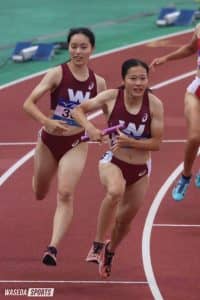 全カレでは、久しぶりの出場となった女子4×100メートルリレー。予選では、早大記録を更新する走りを披露(ひろう)すると、決勝進出を決める。翌日の決勝も同じメンバーで挑むと、4位に入賞する健闘を見せた。