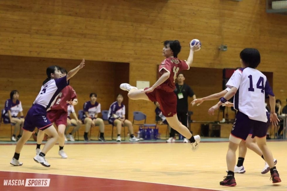 関東学生秋季リーグ(秋季リーグ)は早くも第6戦目を迎えた。早大は、2部から上がってきた順天堂大学と対戦した。試合の立ち上がりからサイド陣を中心にリードを広げ、18-11で前半を折り返す。メンバーやポジションを入れ替えながら臨んだ後半も、出場したメンバー全員が得点し、34-21で順大に完勝した。山野紗由(スポ2=北海道・釧路江南) が「楽しい試合でした」と振り返るように、公式戦初得点を飾った後藤明香里(スポ2=東京学芸大付) 、小原彩理(スポ2=東京・成蹊) 、大野蒔絵(スポ1=埼玉・市立浦和) の得点時にはより大きな盛り上がりを見せた。特に後藤と小原の得点の裏には、並々ならぬ努力と早大のチーム力があった。