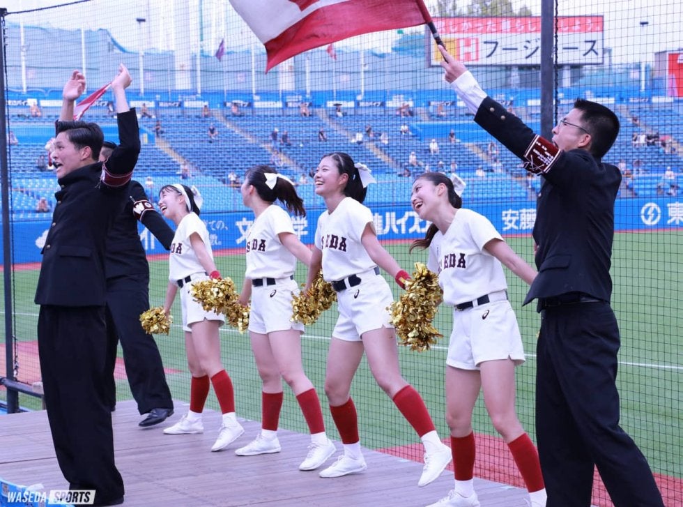 9月中旬にもかかわらず、暑い日差しが照り付ける神宮球場。その中で応援部による熱い応援が響き渡った。東京六大学野球秋季リーグ戦(秋季リーグ戦)が開幕し、土曜日の東大1回戦で快勝した早大。勝ち点を奪取し、幸先の良いスタートを切るべく、東大2回戦に臨んだ。試合は初回に東大に先制点を許し、追いかける展開となったが、逆転を信じリーダー、吹奏楽団そしてチアが一体となる応援を見せる。応援も届き、終わってみれば6-2で勝利し、勝ち点1を獲得することに成功した。