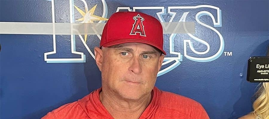 レイズ戦前に取材に応じたエンゼルスのフィル・ネビン監督【写真:小谷真弥】